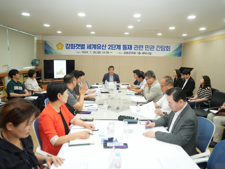 [강화군 세계타임즈=심하린 기자] 강화군의회(의장 배충원)는 지난 26일 의회 세미나실에서 ‘강화갯벌 세계유산 2단계 등재’ 관련 민관 간담회를 개최했다.