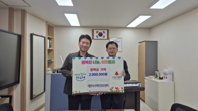 이종환 동장은 "어려운 이웃을 위해 따뜻한 사랑을 실천해 주시는 대전 시니어주간보호센터에 깊이 감사드린다”라며, “기탁해 주신 소중한 장학금은 든든한 디딤돌이 될 수 있도록 도움이 절실한 학생들에게 전달하겠다”라고 답했다.