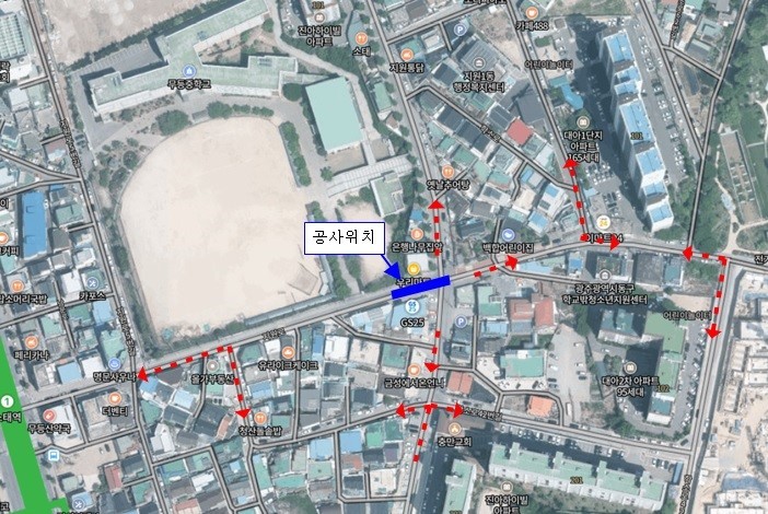 공사는 2차선도로 중앙에 있는 송수관로를 교체하는 것으로, 동구 소태동 우리마트 사거리 일대 도로의 완전 차단이 불가피하다.