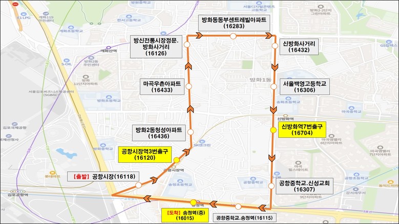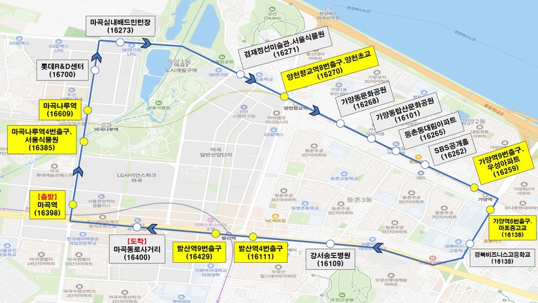 운행 노선은 ▲공항시장역~신방화역~송정역(1번 노선) ▲마곡역~마곡나루역~양천향교역~가양역~발산역(2번 노선) ▲가양역~증미역~염창역~등촌역(3번 노선) ▲화곡역~우장산역~발산역(4번 노선) ▲등촌역~까치산역~화곡역(5번 노선) 등이다.