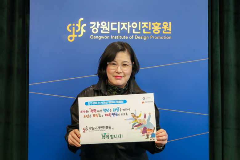 [강원도 세계타임즈=김민석 기자] 최인숙 강원디자인진흥원장(이하 ‘원장’)이 저출산·고령화 등 인구 구조 변화에 대한 사회적 인식을 개선하기 위해 3월 25일 ‘인구문제 인식 개선 릴레이 캠페인’에 동참했다.