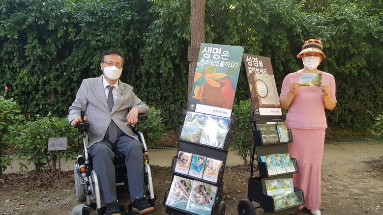 이런 가운데 지난 2일 오후 창원시 마산합포구 상남동에 소재했던 구 북마산역에서 눈길을 끄는 출판물 전시용 카트를 사용해 사람들에게 성서가 알려주는 좋은 소식을 전하고 있다.