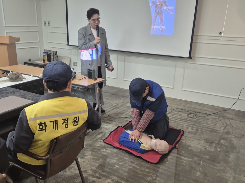 교육 내용은 ▲심폐소생술 이론 및 요령 ▲자동제세동기(AED) 사용방법 ▲각종 응급사항 발생 시 대처 요령 등으로 구성되었으며, 이론과 실습 교육을 병행해 현장 대응 능력을 높이는 데 중점을 두었다.