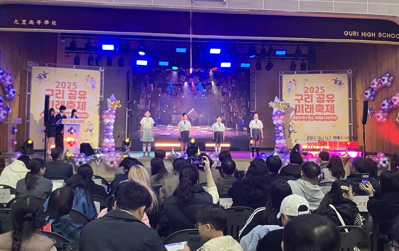 [남양주시 세계타임즈=송민수 기자] 구리남양주교육지원청은 지난 11월 1일(토) 구리고등학교 체육관에서 지역 학생, 학부모, 지역주민 약 1,000여 명이 참여한 가운데 ‘2025 구리 공유미래축제’를 개최했다. 이번 축제는 구리 라온제나 공유학교, 늘봄 공유학교, 미래교육협력지구, 구리시 미래학교 등 다양한 교육 주체가 협력하여 마련된 행사로, 학생들이 직접 참여하고 체험할 수 있는 공연과 전시·체험 부스를 통해 올해 경기 공유학교 활동의 성과를 선보였다.