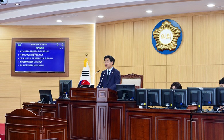 [광양시 세계타임즈=우덕현 기자] 광양시의회(의장 서영배)는 12일 제326회 임시회 1차 본회의를 시작으로 22일까지 11일간의 의사일정에 돌입했다.