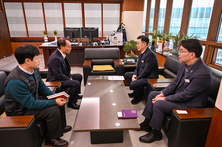| ▲전진선 양평군수가 27일 한강유역환경청을 찾아 이승환 한강유역환경청장과 면담을 가졌다.(사진=양평군) |