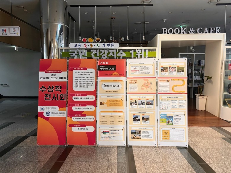 이번 전시는 일주일간 진행되며, 대학생들이 직접 고흥 주요 관광지를 탐방해 기획·제작한 신규 관광코스, 고흥 트래블맵, 스토리텔링 기반 관광 콘텐츠 등 성과물을 지역 주민과 관광객에게 공개하기 위해 마련됐다.