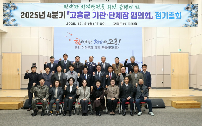[고흥군 세계타임즈=우덕현 기자] 고흥군(군수 공영민)은 지난 8일 군청 우주홀에서 관내 기관·단체장 34명이 참석한 가운데 ‘2025년 4분기 고흥군 기관·단체장 협의회’를 개최했다고 밝혔다.