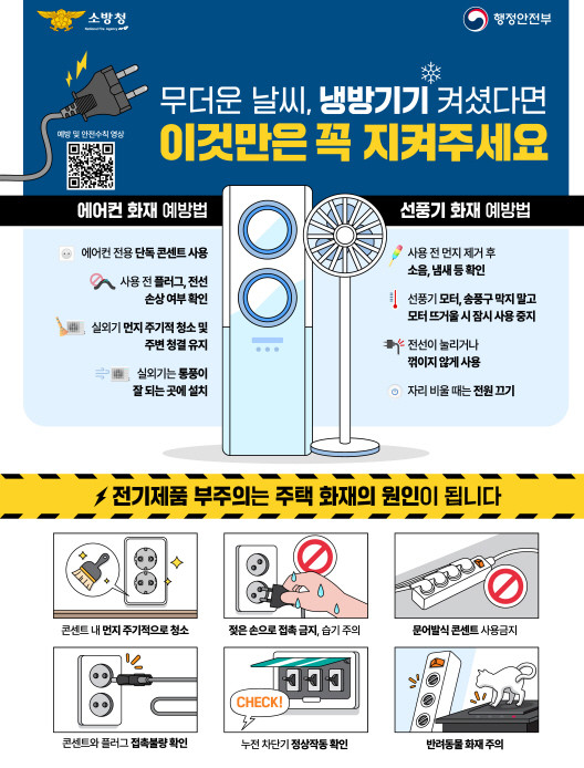 연일 이어지는 이상기온과 폭염으로 에어컨, 선풍기 등 기기 과열, 콘센트 과부하에서 시작된 화재 발생 사례가 증가하고 있다.