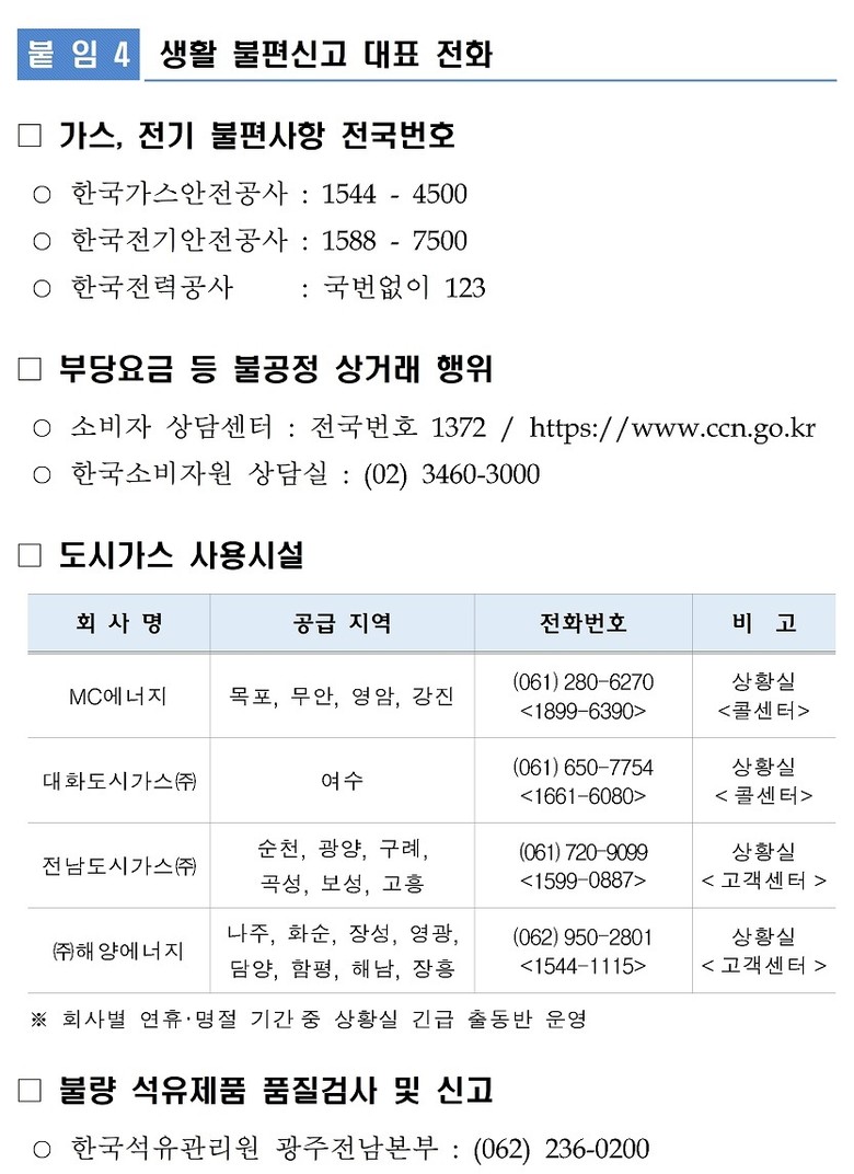 환경·급수 분야는 쓰레기 관리대책과 함께 전기·가스·수도 관련 주민 불편 민원을 신속 처리한다. 수도 동파 등 긴급상황 대비 복구체계도 유지한다.