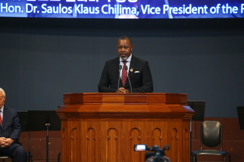 (살로스 칠리마 말라위 부통령이 인사말을 전하고 있다)