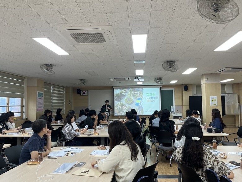 이번 연수에는 학교숲 조성 사업에 선정된 학교의 관리자, 행정실장, 업무 담당자 등 30여 명이 참석했으며 ▲학교숲 조성 사업의 의의 및 협력 방안 ▲사용자 참여형 학교숲 조성 사례 발표 ▲작전여자고등학교 학교숲 조성 현장 체험 등으로 진행했다.