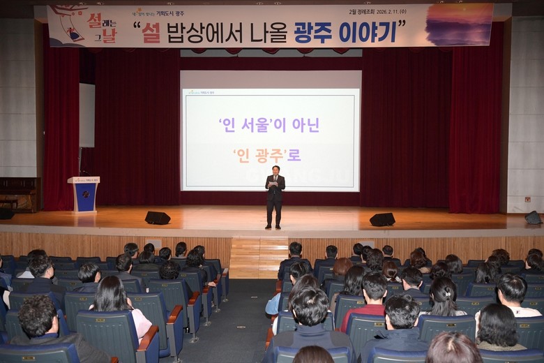 [광주 세계타임즈=손권일 기자] 광주광역시(시장 강기정)는 11일 시청 대회의실에서 ‘설 밥상에서 나올 광주 이야기’를 주제로 ‘2월 정례조회’를 개최, 통합으로 더 크고 깊어질 광주의 미래 구상을 공유했다.