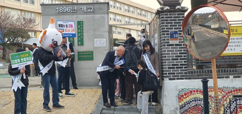 강화교육지원청 역시 4월 1일 강화초등학교 통학로 일대에서 ‘청렴 등굣길’ 홍보를 실시했다. 특히 이번 캠페인은 ‘어린이 교통안전 캠페인’과 연계하여 진행되었으며, 학교 현장에서 꼭 알아야 할 청탁금지법 내용을 담은 리플릿을 배부하며 교육 공동체에 청렴 메시지를 전달했다.