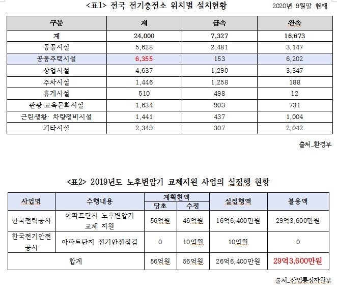 7일, 국회 산업통상자원중소벤처위원회 소속 최승재 의원(국민의힘, 비례대표)이 환경부와 산업통상자원부로부터 제출받은 국정감사 자료에 따르면, 금년 9월말 현재 전국의 전기차 충전소 2만3,548기 중 6,355기가 아파트단지에 설치된 것으로 조사됐다. <표1>