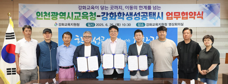 [인천 세계타임즈=심하린 기자] 인천광역시교육청(교육감 도성훈)은 26일, 강화교육지원청이 지역 내 택시조합 2곳과 업무협약(MOU)을 체결하고, ‘강화학생성공택시’ 시범 운영에 본격 돌입했다고 밝혔다.