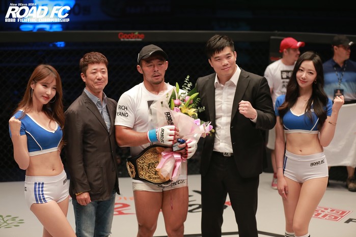[세계타임즈 김인수기자] 지난 15일 원주 종합체육관에서 열린 굽네몰 ROAD FC 054에서 열린 미들급 타이틀전. 챔피언으로 첫 방어전에 나섰던 라인재(33, 팀 코리아MMA)의 챔피언 벨트를 ‘리치’ 양해준(31, 팀파시)이 가져갔다. 최원준(30, MMA 스토리)은 ROAD FC 역대 최단 시간인 5초 TKO승을 거두며 황인수(25, 팀 매드)를 쓰러뜨렸고, 김세영(29, 팀 코리아 MMA)은 1년 3개월 만의 복귀전을 승리로 마무리하며 복귀를 신고했다.