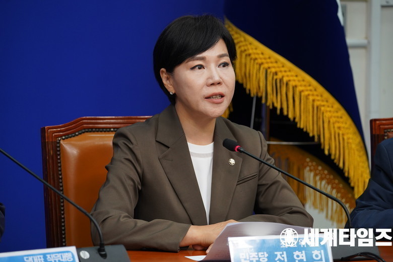 '전현희' 더불어민주당 '최고위원이 27일 서울 여의도 국회에서 열린 최고위원회의에서 발언하고 있다.