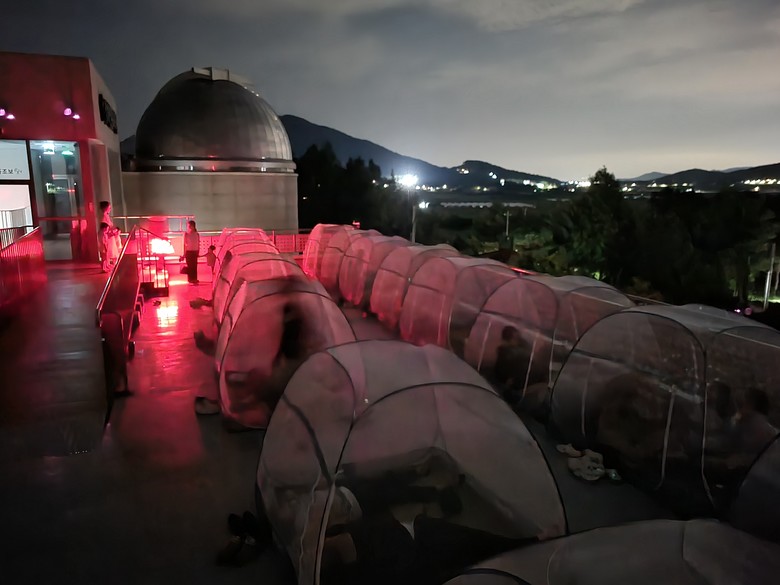 올해 행사에서는 모기장 텐트가 큰 인기를 끌었다. 가족 단위 참가자들이 모기 걱정 없이 밤하늘 아래 누워 별똥별을 기다리는 모습이 눈길을 끌었다.