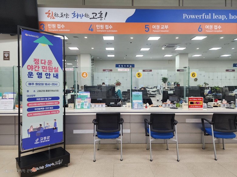 한편, 고흥군은 야간 민원실 운영 성과를 분석해 향후 민원 종류 다양화 등 군민 중심의 맞춤형 행정서비스 강화 방안을 적극 검토할 계획이다.