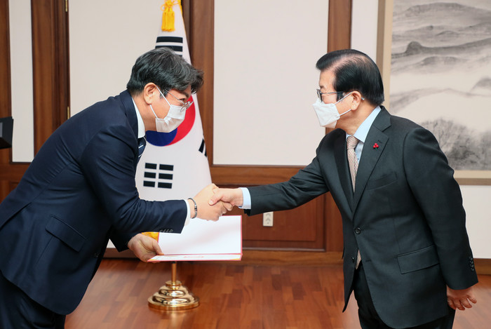 - 박병석 의장, “국민에게 신뢰 주는 국회 위해 노력해줄 것” 당부... 이 총장, “갈등을 녹이는 용광로 같은 국회 되도록 지원하겠다” 화답 -