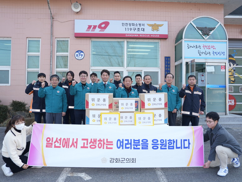 [강화군 세계타임즈=심하린 기자] 강화군의회(의장 박승한)가 지난 31일 교동대교 검문소 및 강화소방서 119구조대를 방문해 군부대 장병과 구조대원에게 위문품을 전달하며 감사의 마음을 전했다.