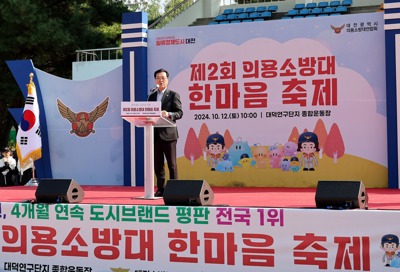 [대전 세계타임즈=이채봉 기자] 대전시의회 조원휘 의장은 12일 대덕 연구단지 종합운동장에서 열린 ‘제2회 의용소방대 한마음 축제’에 참석해 “각종 소방 현장과 재난·재해 현장에서 안전지킴이 역할을 자처해 온 의용소방대는 지역사회의 큰 희망”이라고 말했다. 이날 조 의장은 의용소방대의 헌신과 노고에 감사의 마음을 전했으며, 올 한 해 적극적인 활동으로 타의 모범이 된 의용소방대원들에게 소방발전 유공 표창을 수여하기도 했다.