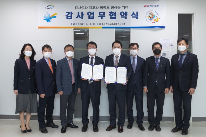 [세계타임즈 손권일 기자]한국도로공사 감사실(상임감사위원 김택수)은 한국수자원공사 감사실(상임감사위원 강래구)과 지난 18일 한국도로공사 본사에서 감사역량 및 청렴도 향상을 위한 업무협약(MOU)을 체결했다고 밝혔다.