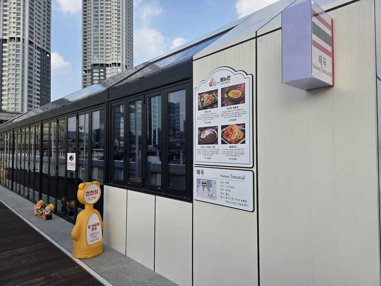 낮에는 탁 트인 강변 전망(뷰)을, 밤에는 화려한 도심 야경을 감상하며 우즈베키스탄, 멕시코, 태국, 베트남, 일본, 이탈리아 등 6개국의 정통 요리를 한자리에서 즐길 수 있는 것이 특징이다.