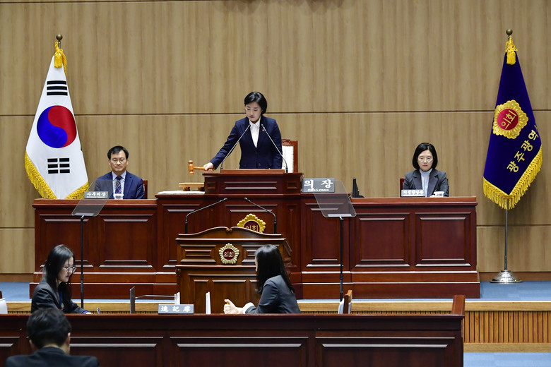신수정 의장은 개회사에서 “14일부터 시작되는 제9대 의회 후반기 첫 시정질문이 광주발전과 시민복리 향상을 위한 보다 좋은 대안을 찾기 위해 함께 고민하고 논의하는 정책토론의 장이 되도록 성실히 임해주시길 당부드리며,