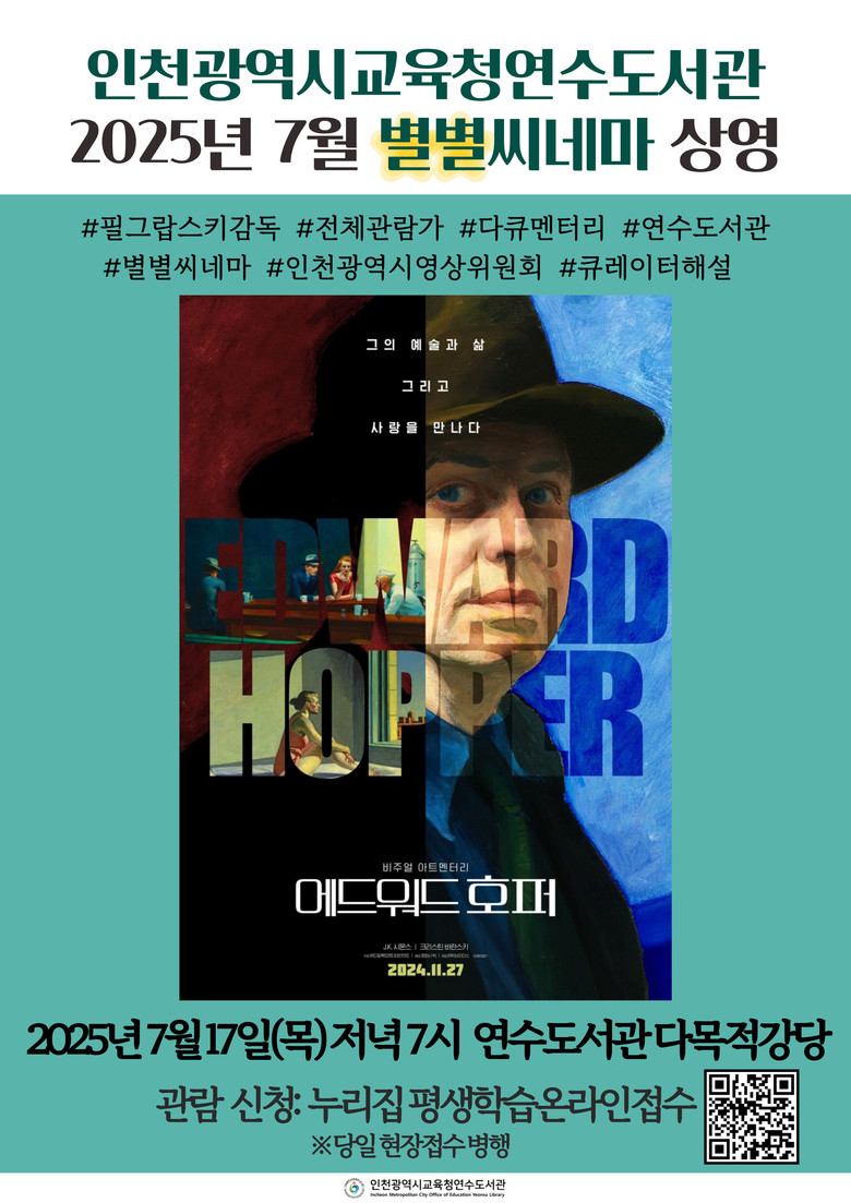 참여를 원하는 시민은 6월 30일부터 연수도서관 누리집에서 신청 또는 당일 현장 접수로 관람할 수 있으며, 문의는 디지털자료실(☎032-899-7570, 7571)로 가능하다.