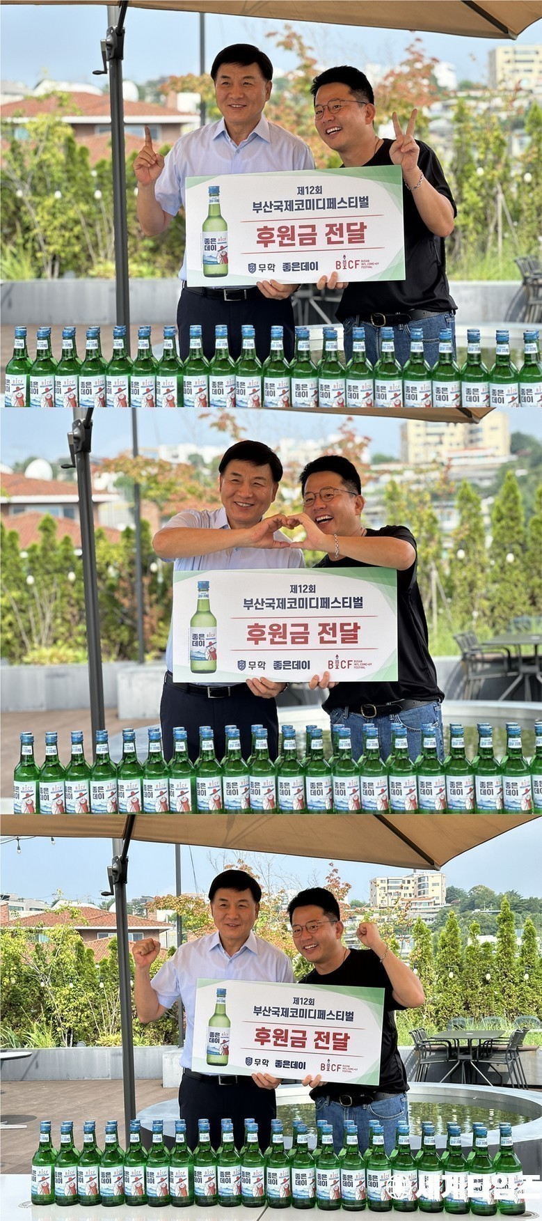 오는 8월 23일(금) 개막을 앞둔 제12회 ‘부산국제코미디페스티벌(BICF)’(이하 ‘부코페’)은 지난 10일(토) 무학과 상호 지원 및 협력을 위한 협찬 협약식을 갖고, 최재호 회장으로부터 후원금 3,000만 원을 전달받았다. 이날은 김준호 집행위원장을 비롯해 권영훈 사무국장, 이명백 콘텐츠미디어 실장이 참여해 뜻깊은 시간을 보냈다.