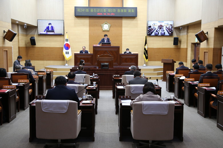 이의명 의장은 “지난 21일간의 정례회 기간 동안 조례안 및 예산안 등 각종 안건 심사를 위해 수고해 주신 동료의원 여러분과, 바쁜 일정 속에서도 안건과 관련한 각종 자료작성에 적극적으로 임해주신 문경복 군수님을 비롯한 공무원 여러분의 노고에 감사드린다.”고 전하고,“ 다가오는 2024년 갑진년에도 웃는 모습으로 만나뵙기를 소망하며, 옹진군민 여러분과 이 자리에 계신 모든 분들의 가정에 건강과 행복이 가득하시길 기원한다.”며 새해 인사를 남기며 발언을 마무리 했다.