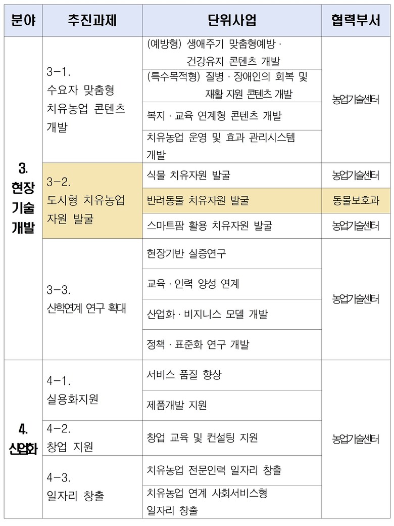 또한 대학·연구기관·현장 농가와의 산학 협력을 확대해 현장에서 바로 적용할 수 있는 실용 기술을 개발하고, 식물·반려동물·스마트팜 등 다양한 도시형 치유농업 모델을 발굴해 치유농업의 적용 범위를 넓히고 지속 가능성을 높인다.