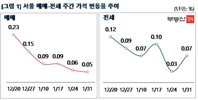 12.16대책 발표 이후 매매가격은 안정된 양상이다. 양도세 중과의 한시적 유예기간으로 정해진 올해 상반기에 매도하려는 매물들이 시장에 틈틈이 나오고 있다. 매수심리가 약화된 상황에서 선행 지표인 재건축 시장의 약세 전환도 임박했다. 강남권을 중심으로 유동성(대출)이 막히면서 비강남권의 풍선효과 움직임도 일부 확인되지만, 서울 전반의 상승세를 이끌기에는 동력이 크지 않은 상황이다. 수요층의 조심스러운 움직임은 2월에도 지속될 것으로 예상된다.