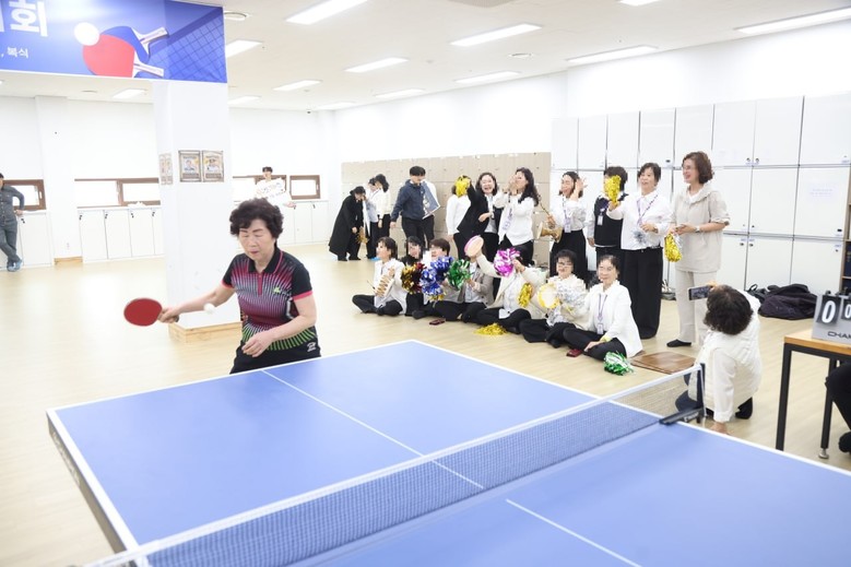 신천지예수교회 도마지파 자문회원의 탁구하는 모습.