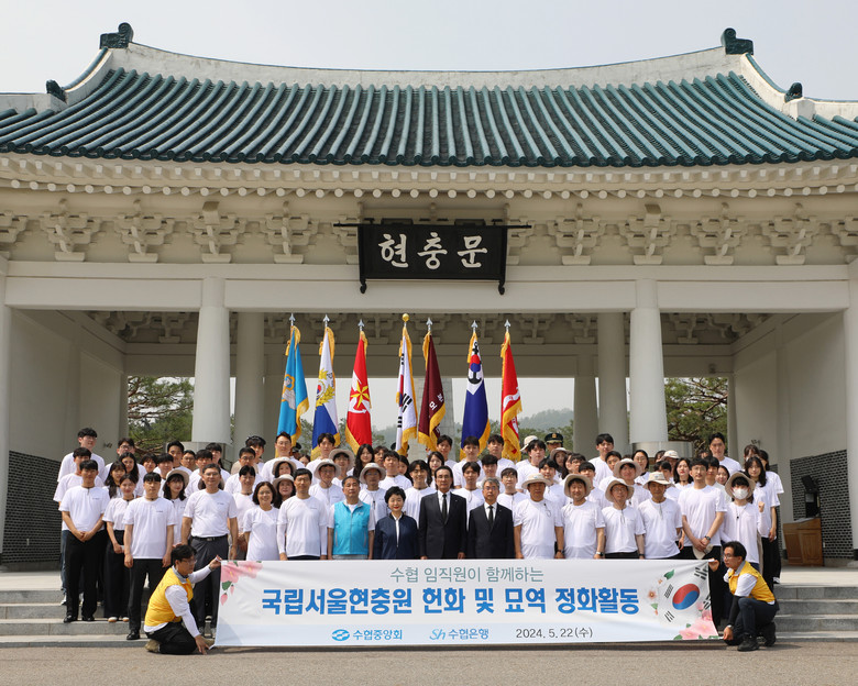 제69회 현충일과 6월 호국보훈의 달을 앞두고 실시한 이날 봉사활동에는 수협중앙회 노동진 회장과 김기성 대표, 수협은행 강신숙 은행장 등 임직원 약 1백여 명이 참가했다.