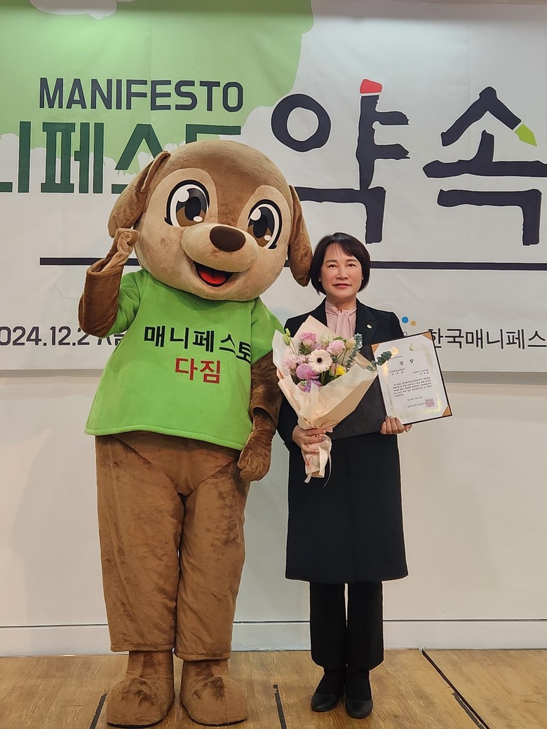 [남동구 세계타임즈=심하린 기자] 남동구의회 이정순 의장(더불어민주당/간석2‧3동, 구월2동)이 지난 27일 영등포아트홀에서 개최된 사)한국매니페스토실천본부가 주관 ‘제16회 2024 지방의원 매니페스토 약속대상’에서 ‘좋은 조례 분야 우수상’을 수상했다.