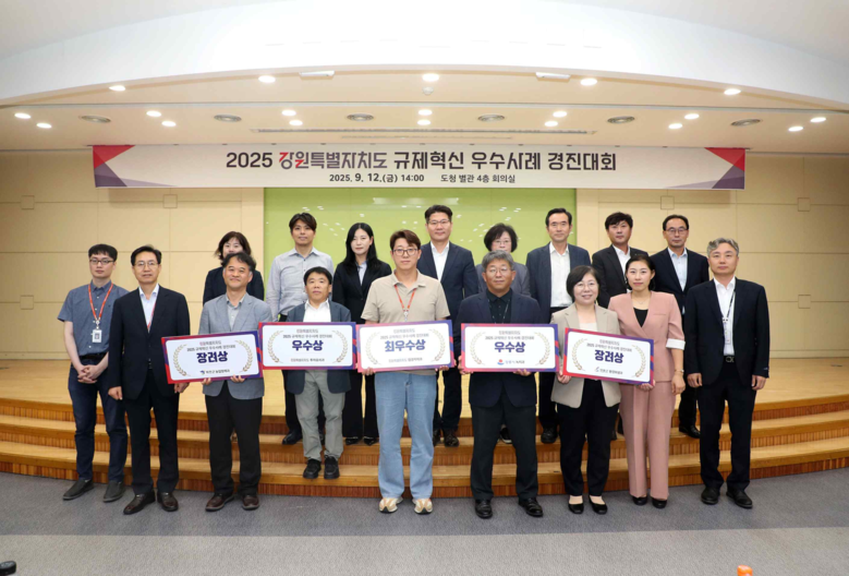 [강원도 세계타임즈=김민석 기자] 강원특별자치도(도지사 김진태)는 9월 12일(금) 오후 2시 도청 별관 회의실에서 내외부 심사단 및 도·시군 관계공무원 등 약 40여 명이 참석한 가운데 2025년 강원특별자치도 규제혁신 우수사례 경진대회를 개최했다.
