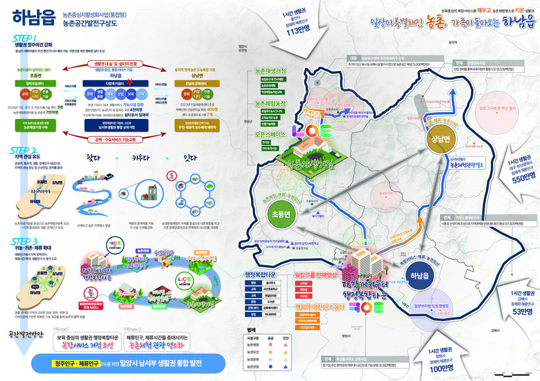 이번에 농촌중심지활성화사업 통합형에 선정된 밀양시는 중심지를 하남읍으로 하고 인근 초동면을 배후지로 하여 총 300억 원을 투입한다.
