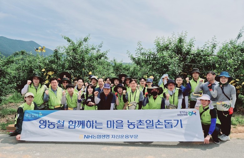 이번 농촌일손돕기에는 ▲ 농협생명 김재복 자산운용부사장 ▲투자전략부 부문장 ▲자산운용부 임직원 등 25여 명이 참석했다. 농협생명 임직원은 인력난을 겪고 있는 농가에서 사과 봉지를 씌우고, 주변 환경을 정리하는 작업을 지원했다.