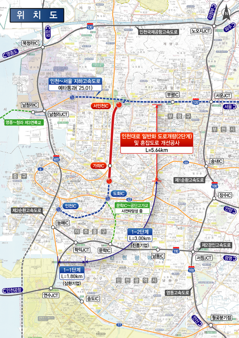 이번 사업은 주안산단고가교에서 서인천IC 구간까지 5.64km 구간에 이르는 구간에 총 8,222억 원을 투입하는 대규모 공사로, 설계와 시공을 일괄 진행하는 ‘턴키 방식’으로 진행된다. 기존 인천대로에 설치된 옹벽, 방음벽, 고가교, 육교 등을 철거한 뒤, 상부에는 5.64km의 왕복 4차로 일반도로와 중앙 녹지를 조성하고 하부에는 4.27km 길이의 왕복 4차로 지하도로를 신설한다.