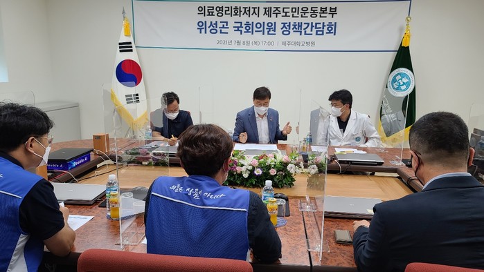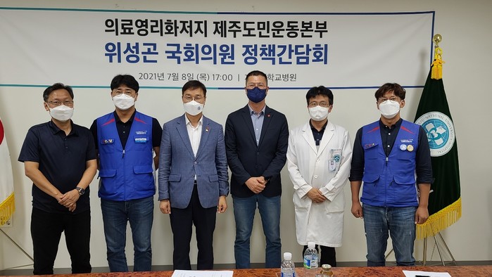 위성곤 국회의원은 지난 8일 오후 5시 제주대학교병원에서 열린 의료영리화저지와 의료공공성 강화를 위한 제주도민운동본부와 정책간담회에서 "지역사회 오랜 갈등과 의료공공성 훼손 논란이 되어 왔던 영리병원 문제를 이제는 제도적으로 매듭지을 때가 됐다"면서 이같이 밝혔다.