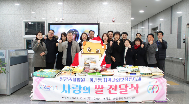 이날 전달식에는 박천권 원광종합병원 관리이사를 비롯한 병원 관계자, 박선희 화산동장, 한옥자 화산동 지역사회보장협의체 위원장 등이 참석했다.