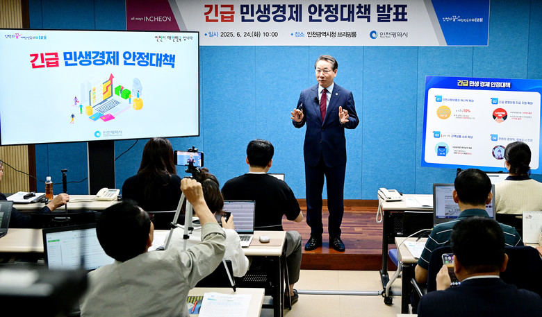 [인천 세계타임즈=심하린 기자] 인천광역시는 유정복 인천시장이 6월 24일 시청 브리핑룸에서 ‘긴급 민생경제 안정대책’을 발표하고, 침체된 지역경제 회복을 위한 본격적인 대응에 나섰다고 밝혔다.