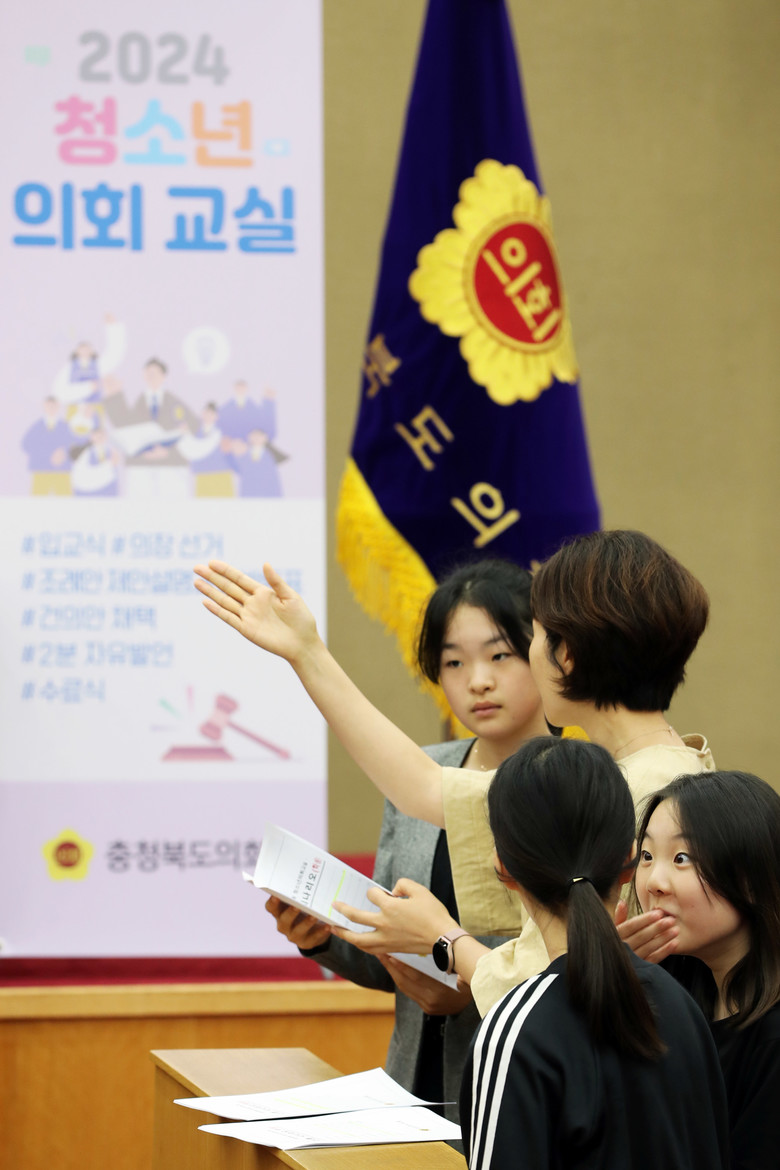 청소년 의회교실은 학생들이 1일 도의원이 되어 본회의장에서 의장 선거, 안건 처리, 2분 자유발언 등 의정활동을 하는 도의회 대표 학생 체험 프로그램이다.