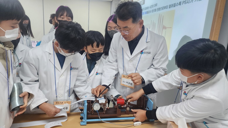 ‘지오스쿨’은 학교에서 주로 이론으로 배워왔던 지구과학을 지역 지질유산과 재미있는 실험을 연계해 학생 호응을 이끌어낸 간판프로그램이다.