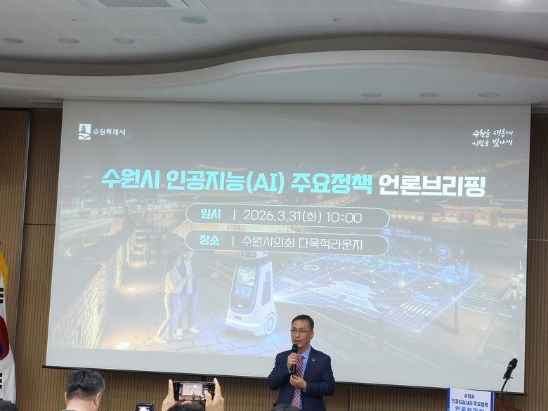 수원시 오민범 AI스마트정책국장은 31일 수원시의회 1층 다목적 라운지에서 언론브리핑을 열고, 수원시의 인공지능 정책 방향과 주요 추진 과제를 발표했다.