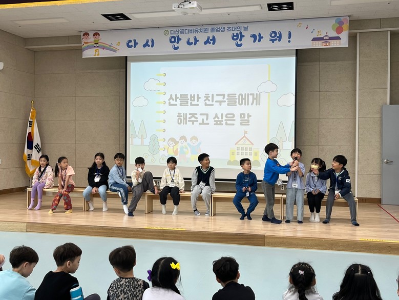 행사가 열린 강당에서는 담임선생님과 졸업반 유아들이 졸업생들을 따뜻하게 맞이했다. 졸업생들은 초등학교에서의 경험을 나누고, 산들반 유아들은 궁금했던 초등학교에 대한 질문을 던지는 시간을 가졌다. 졸업생들은 동생들의 궁금증에 성실히 답변하며 의젓한 모습을 보여주었다.