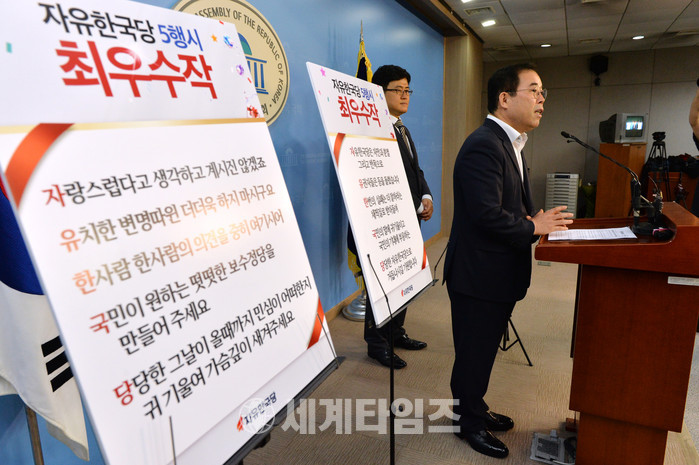 [세계타임즈 이채봉 기자]자유한국당은 21일 7·3 전당대회 개최 이벤트로 진행했던 5행시 공모전 결과를 발표했다. 당시 각종 조롱성 댓글로 화제가 된 바 있으며 추미애 더불어민주당 대표가 참여하기도 했다.